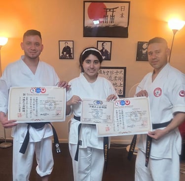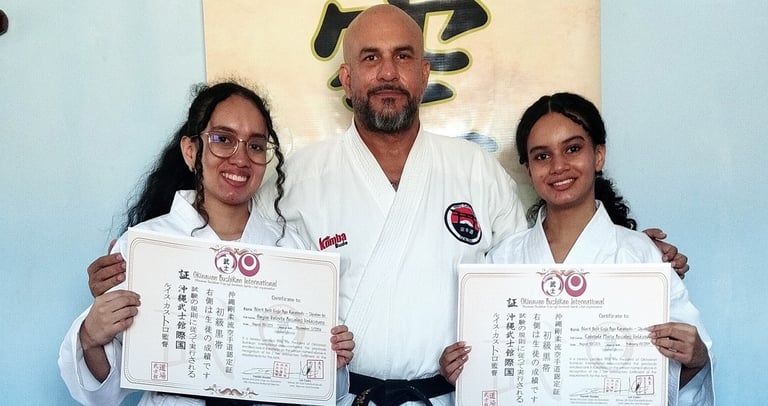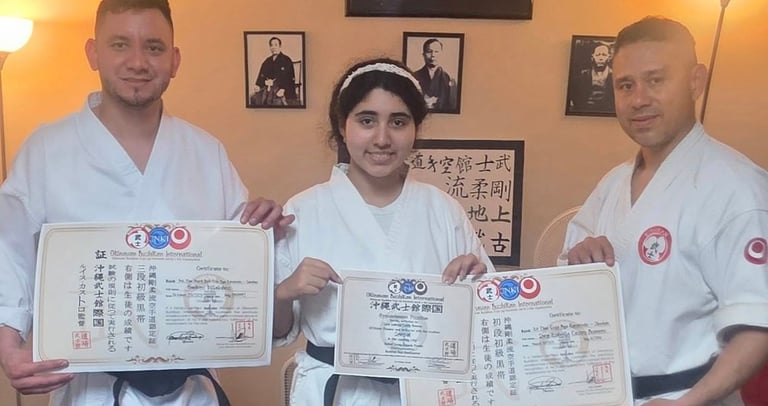El domingo 31 de agosto, la Organización Okinawan Bushikan International llevó a cabo los exámenes oficiales de Okinawa Goju Ryu Karatedo. Las estudiantes Angie Rosales y Gabriela Rosales (Honduras) aprobaron satisfactoriamente el grado de Shodan Ho, mientras que Sara Castro (USA – Orlando, FL) alcanzó el grado de Shodan (1er Dan). Todas cumplieron con excelencia el Test Standard de Obi, demostrando técnica, disciplina y compromiso con el arte marcial. Felicitaciones a las tres por este importante logro. Ahora comienza un nuevo camino: Familia, Disciplina y Esfuerzo. 🥋🔥