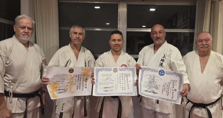 En Sunrise Fl Dojo Miami, en el mes de Noviembre se realizaron prácticas y exámenes de CNKI, WIKC y Hachiokai Kobudo. Nuestro Sensei Luis Castro rindió exitosamente los exámenes de Karate y Kobudo para 6º Dan. La mesa de evaluadores contó con Sensei Facundo Gallero y Gustavo Gondra, acompañados por Sensei Gustavo Saul y José Recalde. ¡Felicitaciones a todos los participantes por su dedicación y esfuerzo!